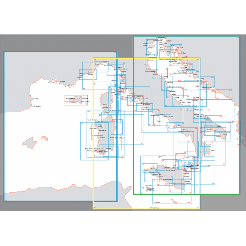 Seekarte des Hydrografischen Instituts der italienischen Marine, gedruckt auf einem Blatt im Format 83 x 116 cm.