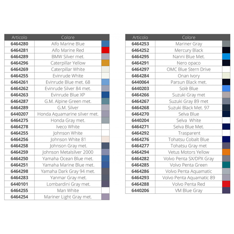 Schnelltrocknender Nitro-Kombinations-Sprühlack für Innen- und Außenbordmotoren zum Ausbessern und Lackieren. Hohe Kratz- und Witterungsbeständigkeit. 400 ml Spraydose. 6er-Pack.