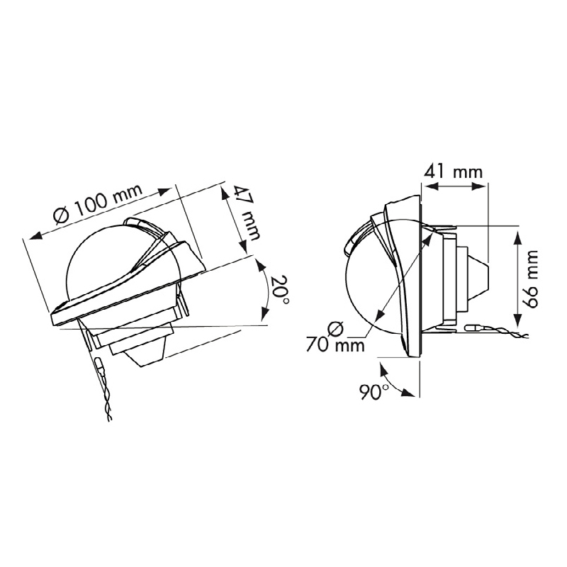 Mit sichtbarem Ø 70 mm. Konische Rosette mit 5°-Graduierung, für Motorboote von 5 bis 8 m, Standardbeleuchtung mit 12 V. Einbaumontage auf geneigten Ebenen von 20° bis 90° oder vertikal