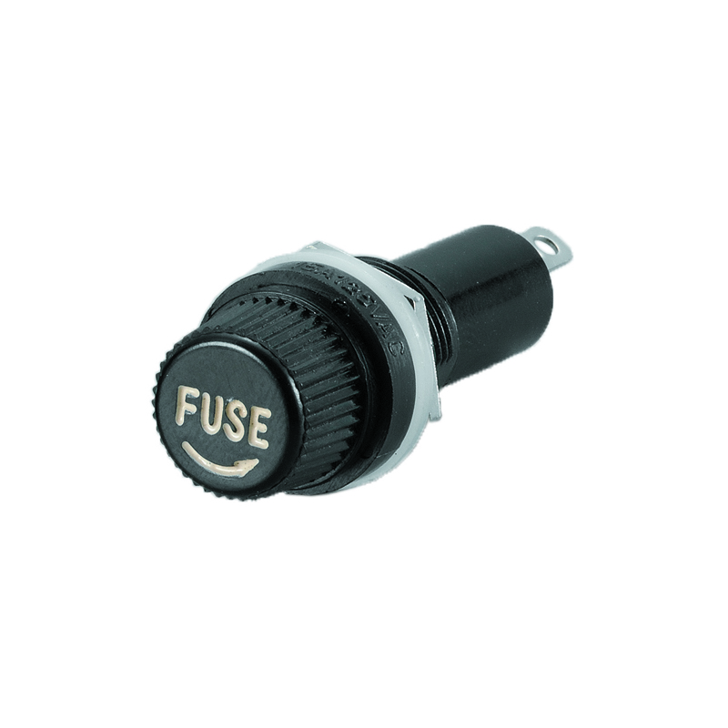 Unterputz-SicherungshalterMax 10A, Schraubverschluss, versilberte Messingkontakte, glasüberzogener Makrolonkörper, Loch Ø mm 16. Für Sicherungen (Art.-Nr. 3939120 bis 126) Glas Ø mm 6,3 x Länge mm 32.