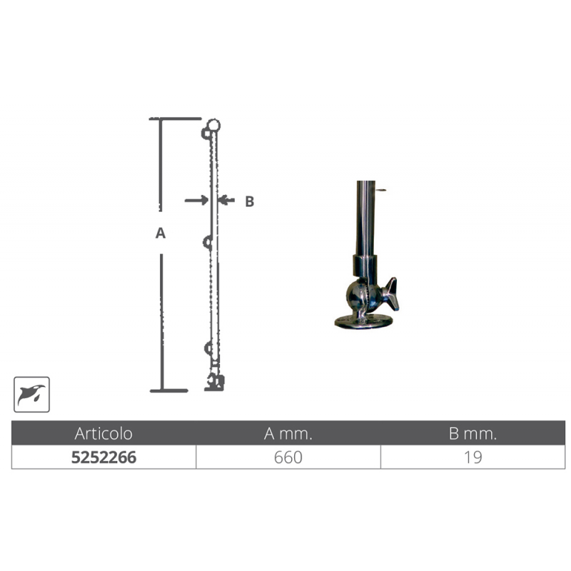 Zusammenklappbarer Fahnenmast aus Edelstahl, komplett mit Ø 30 mm Gelenkfuß aus Edelstahl AISI 316, 66 cm lang x 19 mm dick.