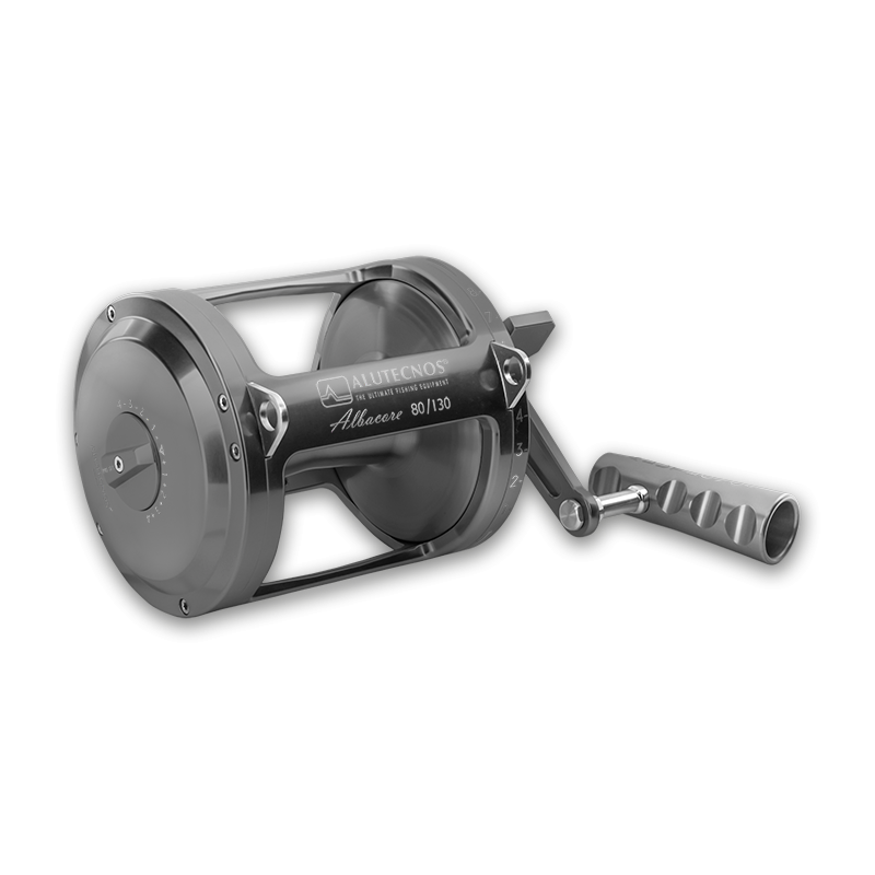 Albacore 80/130, stufenloses "Anti-Reverse"-System, vorderer Nocken und Auslöseknopf für die Positionierung des Kupplungshebels in "frei" und "voll" mit automatischer Rückstellung, fünf Kugellager und korrosionsbeständige Zahnräder aus gehärtetem Edelstahl. Robustes und zuverlässiges Stangenbefestigungssystem und Kupplungsscheibe aus Kohlefaserverbundwerkstoff der neuesten Generation (entsprechend geschützt, um lange Einsatzzeiten unter Beibehaltung der unveränderten Bremseigenschaften und einer gleichmäßigen Progression ohne Stick-Slip-Phänomene zu gewährleisten). Die spezielle Montagetechnik ermöglicht es, alle Schrauben, die ausschließlich aus rostfreiem Stahl Aisi 316 bestehen, auch nach langer Zeit in der Meeresumgebung zu lösen.