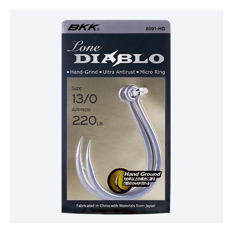 L'idea alla base del design del Lone Diablo era quella di creare il perfetto amo singolo per esche artificiali. Le ultime tecnologie di BKK sono state messe insieme per dare vita a questo amo, dotato di prestazioni di penetrazione di prim'ordine, resistenza alla corrosione dell'acqua salata di lunga durata e un'eccellente resistenza della struttura dell'amo.