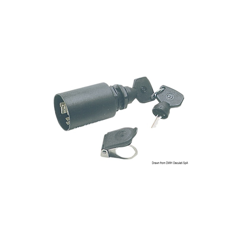 Mit abziehbarem Schlüssel. Zusätzliche Funktion, mit der Sie bestimmte Zubehörteile wie den Bilgensauger, den Wasserstand und den Kraftstoffstand aktivieren können, ohne das gesamte System mit Strom zu versorgen. Die Wasserdichtigkeit wird durch eine Kappe gewährleistet, die den Schlüsseleingang verschließt. Die Zusatzfunktion kann nicht versehentlich aktiviert werden, da der Schlüssel auch gedrückt werden muss, um ihn gegen den Uhrzeigersinn zu drehen. Universell für Benzin- und Dieselmotoren. Nylongehäuse , Edelstahl + Nylon + Gummikappe.