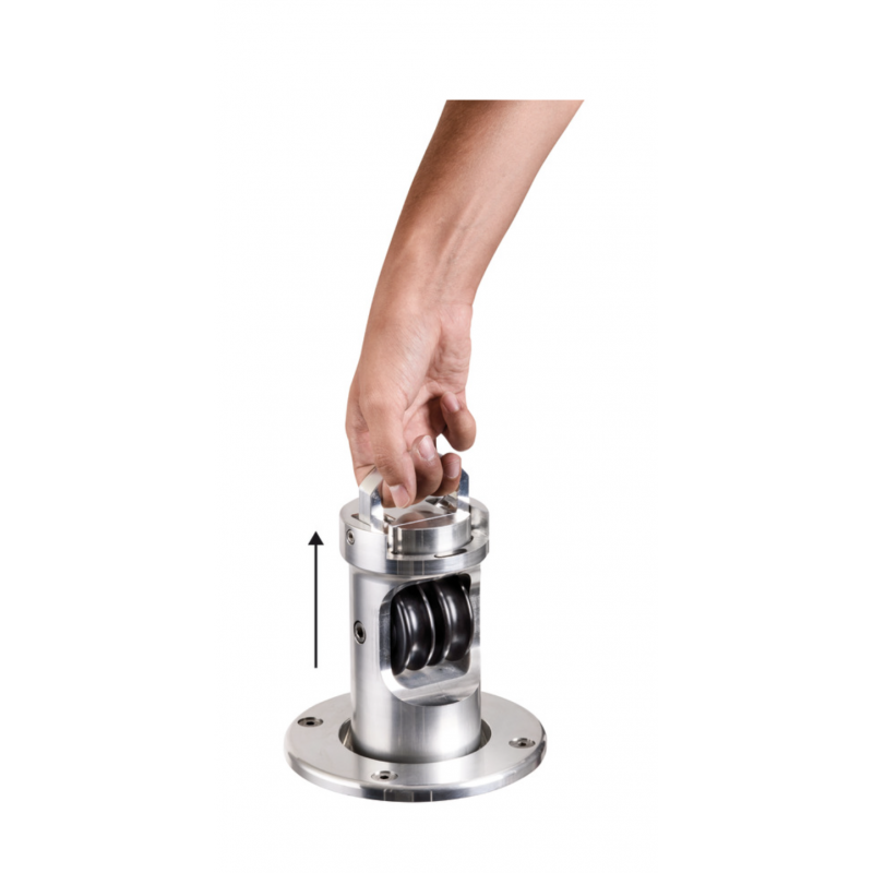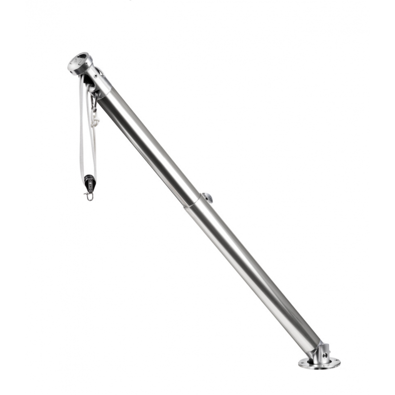 Zwei teleskopische, einziehbare Davits aus eloxiertem Aluminium, die für maximalen Komfort und die Reinigung des Decks konzipiert sind. Bei Nichtgebrauch werden die Davits unter dem Deck geschlossen, so dass das Deck völlig frei bleibt. Sie sind mit einer doppelten Umlenkrolle ausgestattet, ideal für die Handhabung des Beibootes und der Gangway. Die Davits können in zwei Konfigurationen positioniert werden: in einer Linie mit dem Boot, um das Beiboot anzuheben, oder um 20° nach innen geneigt, um die Gangway anzuheben. Das verstellbare Teleskoprohr ermöglicht es, die Länge mit Hilfe des im Kopfteil untergebrachten Griffs an die verschiedenen Bedürfnisse und Beibootstypen anzupassen.