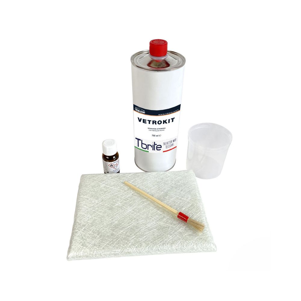 Bestehend aus: 800 g Polyesterharz, Härter, Glasfasergewebe 64x47 cm, Mischschale, Pinsel, Handschuhe.