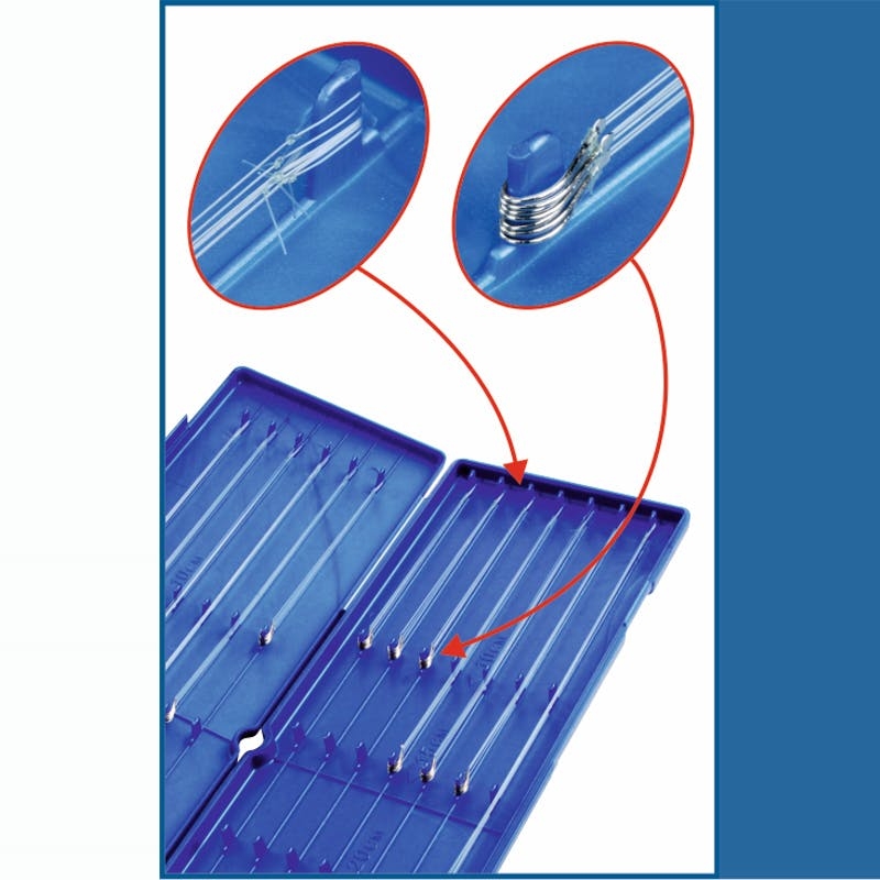 Der Portafinali 300 ist ein Behälter, der für die Aufbewahrung und den Schutz einer großen Anzahl von Flossen von 10 bis 30 cm Länge und eines Vielfachen davon konzipiert ist. Er ist kompakt und sehr leicht, verfügt über 13 Befestigungspositionen und kann über 100 gebrauchsfertige Rigs aufnehmen. Der Durchmesser und die Länge der Haltezapfen sind so bemessen, dass auch kleine Haken und Schlaufen Platz finden. Die Länge des Endstücks ist im Inneren des Behälters deutlich angegeben.