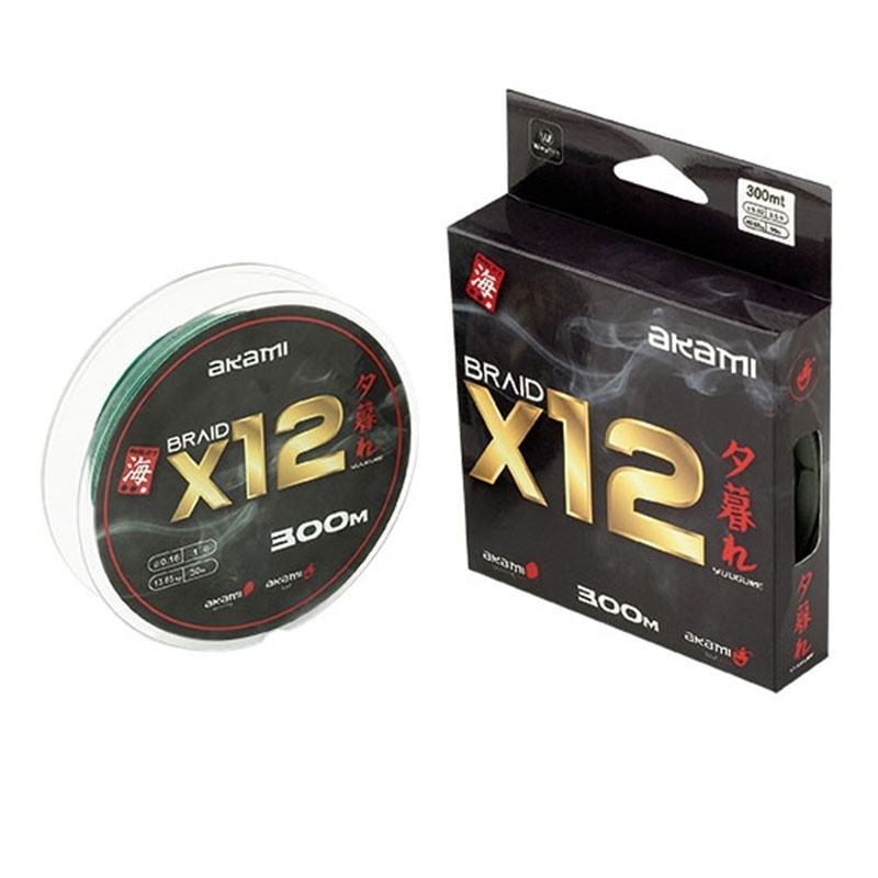 Yuugure X12, geflochten mit japanischer Technologie, 12 spiralförmig geflochtene Fasern, 100 % PE. Akami hat ein neues Herstellungsverfahren entwickelt, bei dem die Fasern langsamer, aber mit höherer Spannung geflochten werden, was die Dehnung verringert und die Lebensdauer erhöht. Das Ergebnis ist eine extrastarke Schnur mit hoher Knoten- und Abriebfestigkeit sowie geringer Wasseraufnahme. Das neue runde Profil ist ideal für lange Distanzen und reduziert den Reibungskoeffizienten um 34 %. Dadurch gleitet die Schnur leichter durch die Ringe. Dunkelgrüne Farbe, ideal zum Angeln in klarem Wasser und auf verdächtige Arten.