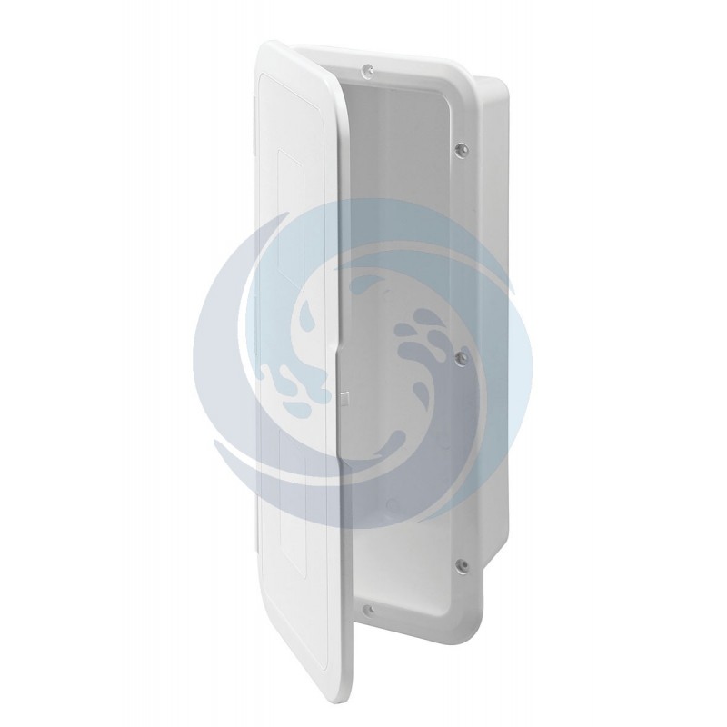 PVC kg.1 Feuerlöscherhalter Nische mit Tür, Abm.mm. 434 x 196 x 105 tief. Schnitt mm 374 x 124