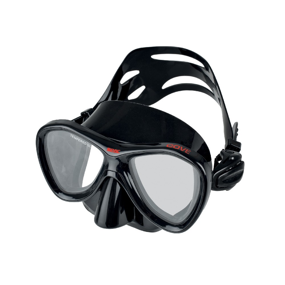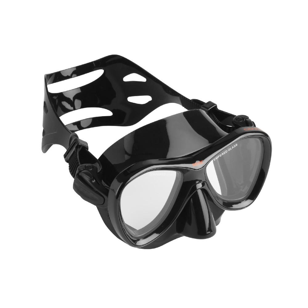 - Symmetrische Linsen aus gehärtetem Glas und reduziertes Innenvolumen für optimalen Komfort auch beim Freitauchen
