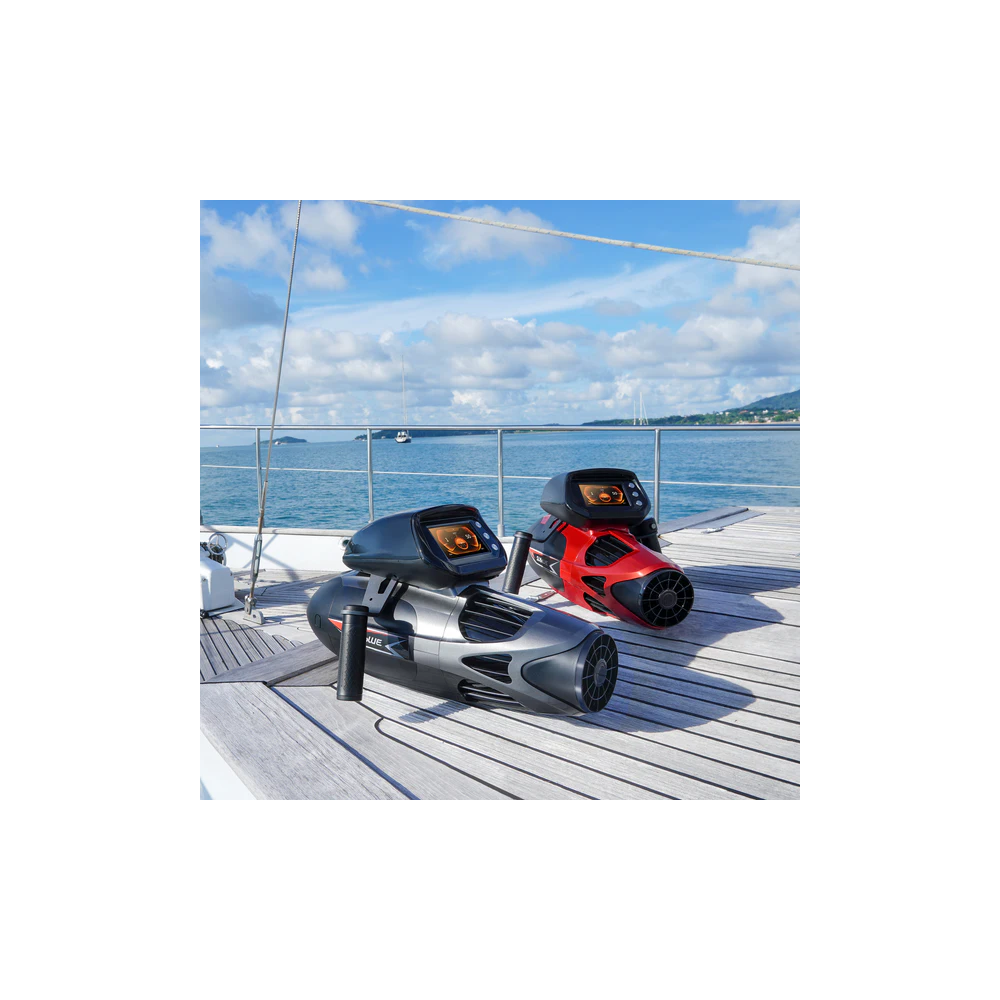 Erforschen Sie das Meer mit dem Vapor Sublue! Dieser Unterwasserscooter bietet einen sanften Antrieb und einstellbare Geschwindigkeiten (6, 8 oder 10 km/h), perfekt für alle, die den Nervenkitzel suchen oder sich entspannen möchten. Gleiten Sie mühelos durch die Unterwasserwunder und erleben Sie ein unvergleichliches Unterwasserabenteuer.