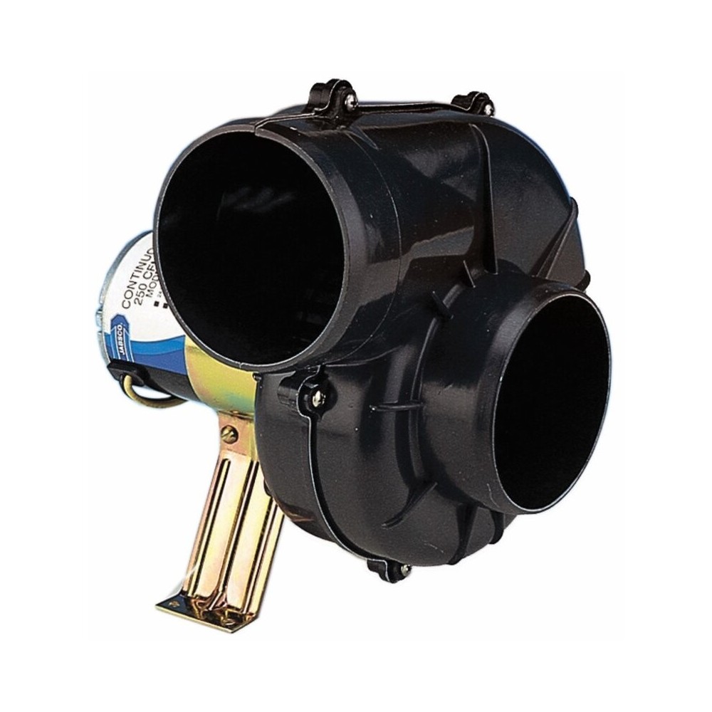 Korrosionsbeständige Gebläse sorgen für die Belüftung von Bilgen, Motorräumen, Kombüsen und Decks. Leistung: 7,1 m³/min (250 CFM) bei offenem Durchfluss. Formstabile und leise Delrin-Rotoren. Effizienter Luftstrom bei hohem Volumen. Robustes, verstärktes Kunststoffgehäuse. Aus korrosionsbeständigen Materialien gefertigt. Entspricht ISO 8846 MARINE und USCG 183.410: Zündschutzart. Flexible Befestigung ermöglicht 360º-Einstellung der Ausblasrichtung. Anschlüsse: Für 100 mm (4")-Rohre. Stromstärke ca. 6 A, 10 A-Sicherung. Maße: Höhe 22,9 cm / Breite 23,5 cm / Länge 23,2 cm