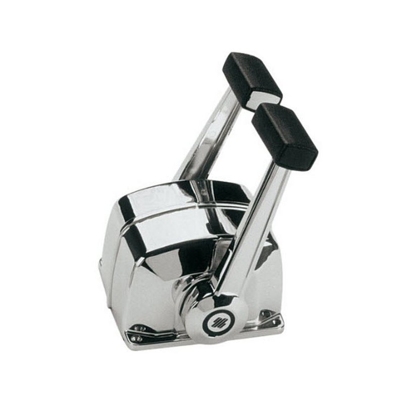 Sie bestehen aus druckgegossenem Aluminium, lackiert oder verchromt. Durch Herausziehen des Hebels wird der Wechselrichter während der Warmlaufphase des Motors ausgeschaltet. Mit Hilfe des Sicherheitsschalters X12 (optional) kann der Motor nur gestartet werden, wenn sich der Wechselrichter in Neutralstellung befindet. Die Trimm-Modelle verfügen über einen Schalter im Griff, der die Einstellung des Fußhebers bei Außenbordmotoren und Heckantrieben ermöglicht. Sie verwenden die Motorsteuerkabel C2-C8-C14 und Mach 0-14. Für die Kabel C5-C16 und Mach 5 ist der Adaptersatz K35 erforderlich.