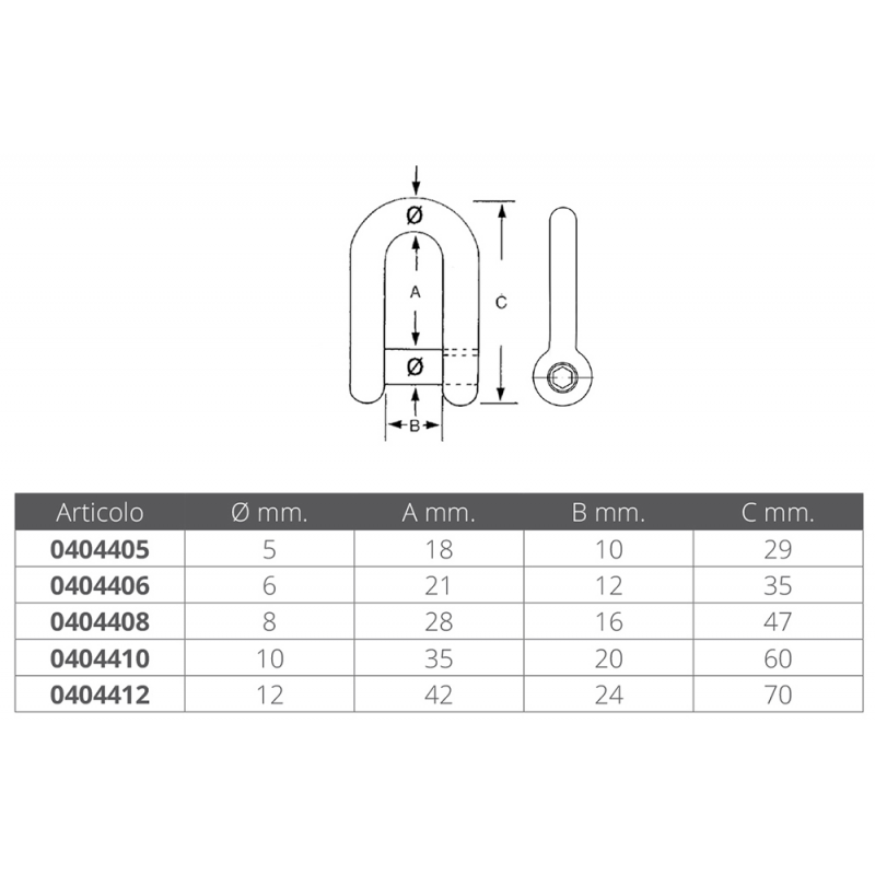 AISI 316 stainless steel shackle with recessed pin for anchors.