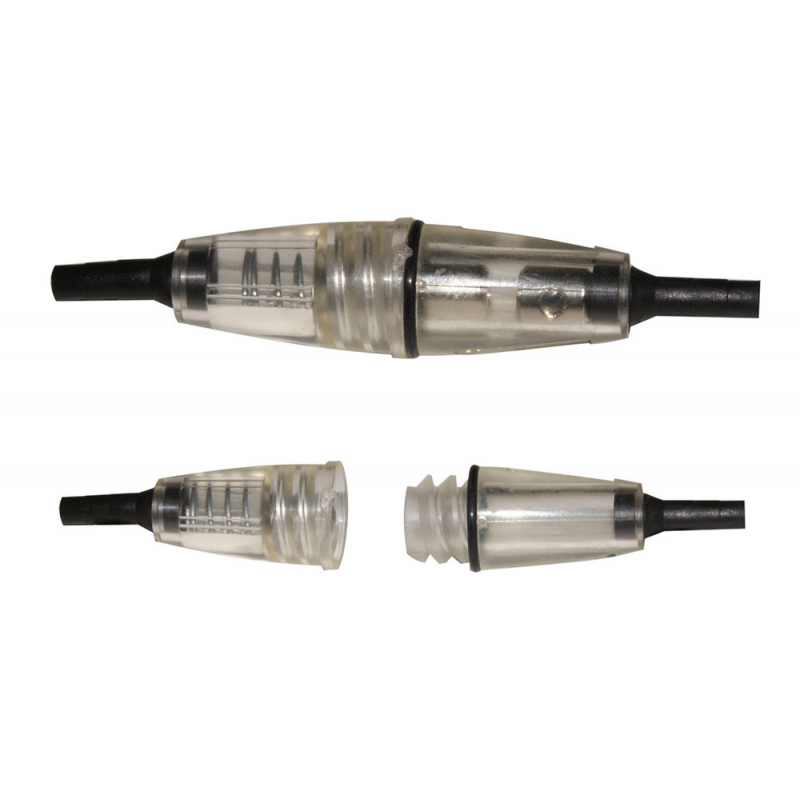 Transparent, IP66 watertight, flying fuse holder for glass fuses.