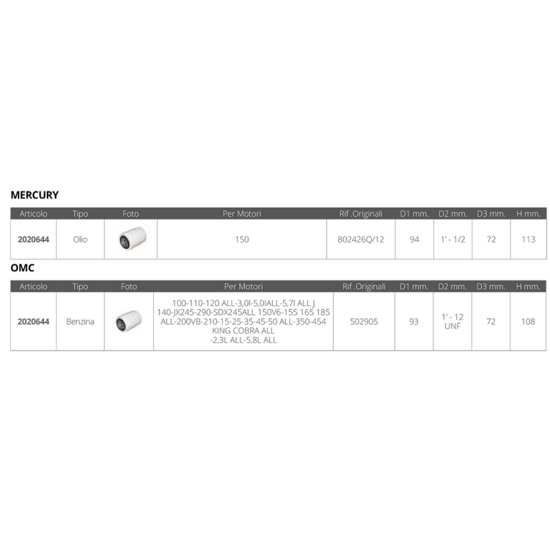 Fuel filter Dim.Ø est.mm.93 Ø gasket mm.72 height mm.108 pitch 1'-12 UNF