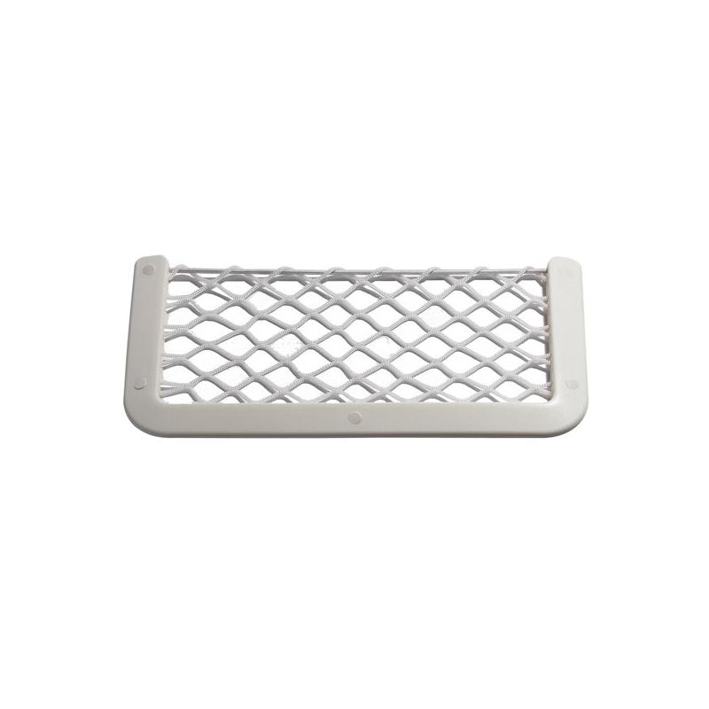 Storage net with upper thread in elastic braid, fixing with screws, dimensions mm. 365 x 180