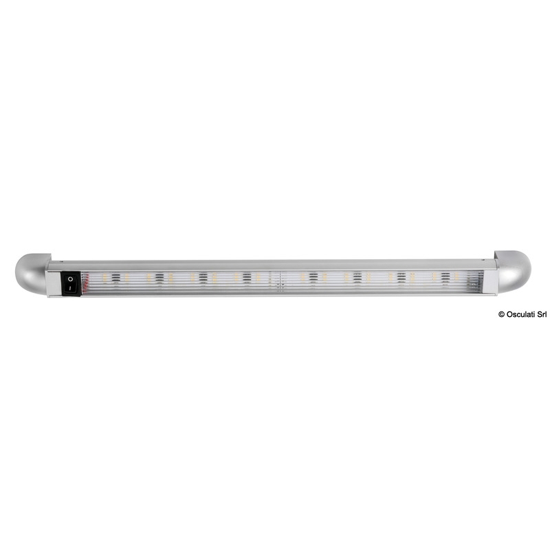 High intensity LED and built-in switch. Anodized aluminum housing, opal glass front.