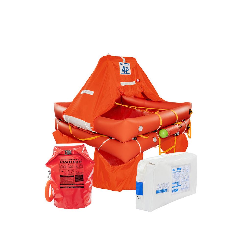 Developed in accordance with DM August 12, 2002 and constantly subjected to innovation, it represents the highest level of Safety on the market; entirely designed and built in Italy, it is the Syntesy of all the experience of Eurovinil Survitec, and it is the best Eurovinil ever! More compact, lighter, safer, it combines top-notch technical features with dimensions unique on the market! Required for unlimited navigation from the coast and reserved for boats flying the Italian flag, while being complete with internal equipment it will amaze you with its compactness and manageability, essential features for a safety product that must be thrown overboard and save your life! The soft suitcase version has 2 additional handles for safe handling and use. The rigid fiberglass container available in sizes from 4/12 places, is exclusive to Eurovinil.