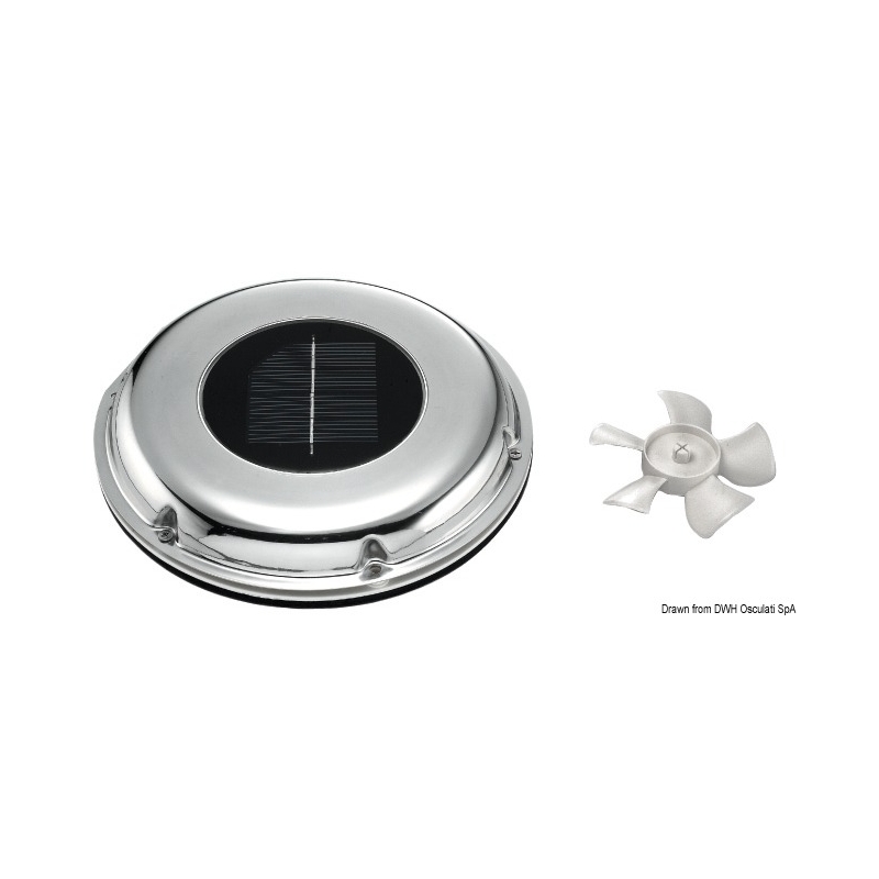 It represents the most advanced ventilation system, using solar energy. Polished stainless steel shell. ON-OFF switch. The ventilator is equipped with NiMH rechargeable batteries that accumulate energy during the day and guarantee 30 hours of operation even without sunlight. Complete with two left/right fans that allow you to choose whether to let air in or out .