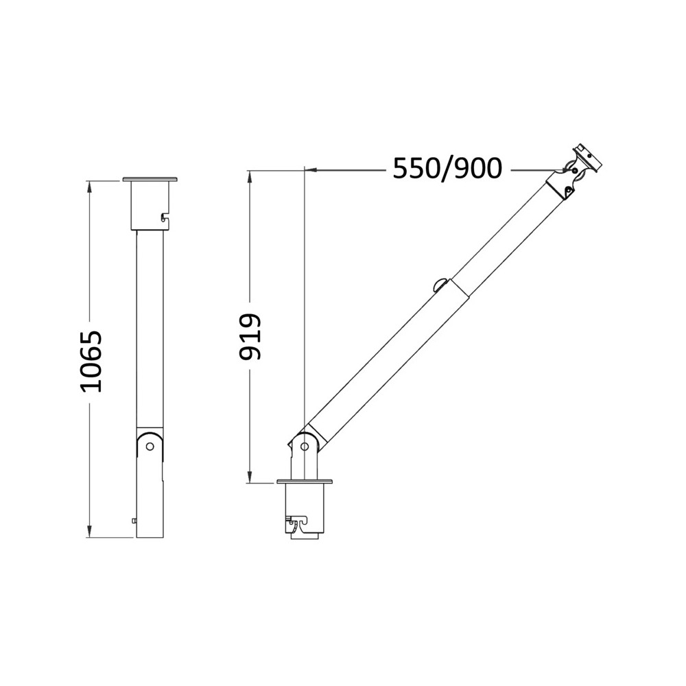 | Scope (per pole) | Fixing base | Recess hole | Telescopic tubes | Height (H) | Reach (L) | Inner part (D) |