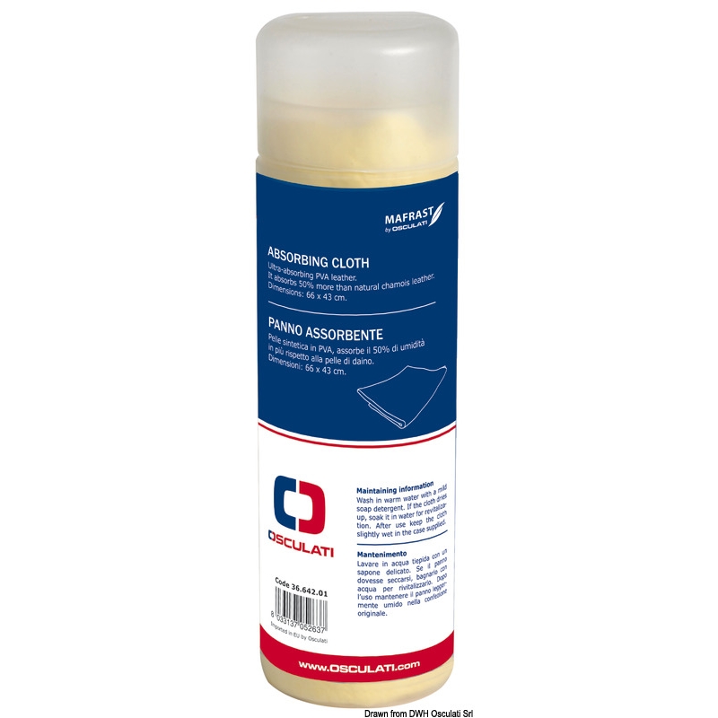Ultra-absorbent PVA synthetic leather. Absorbs 50% more than animal chamois leather.