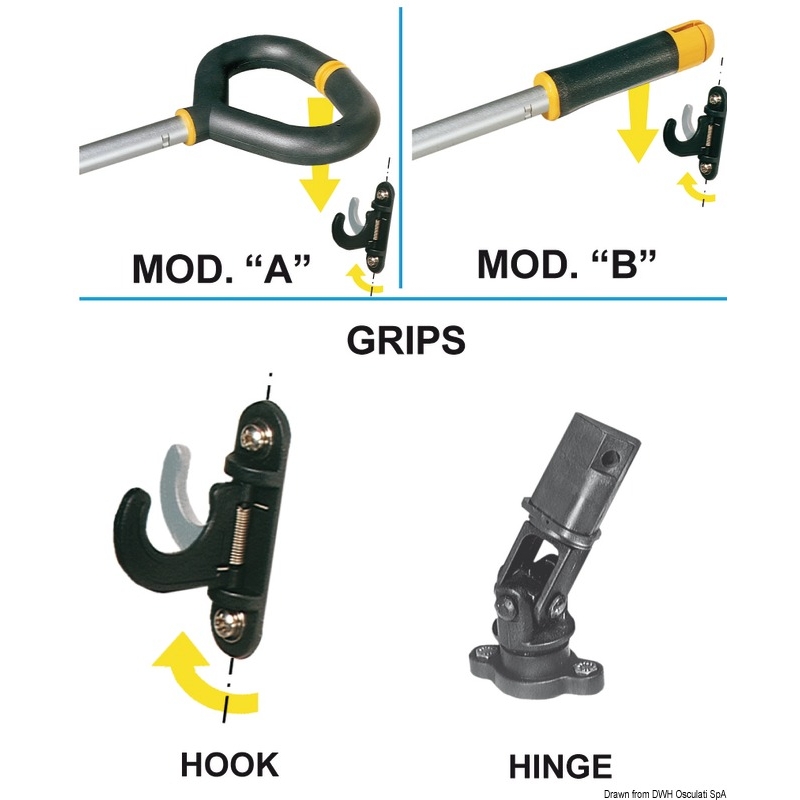Adjustable in length easily and precisely. It combines two important functions : 1) it is a robust and precisely extendable stick; 2) it is a manual autopilot ; it performs the same function as the locking handwheel on wheel steering systems. Once locked in its seat, it holds the tiller in the desired position. It can be easily adjusted by rotating the handle and sliding it to the new desired position; then, by releasing the handle, “Friend” will lock in that position. Returning to steering with the traditional stick is easy and intuitive: simply lift it from its housing to release it. Useful when sailing, to abandon the tiller at any time, in port or at anchor to keep the tiller locked.