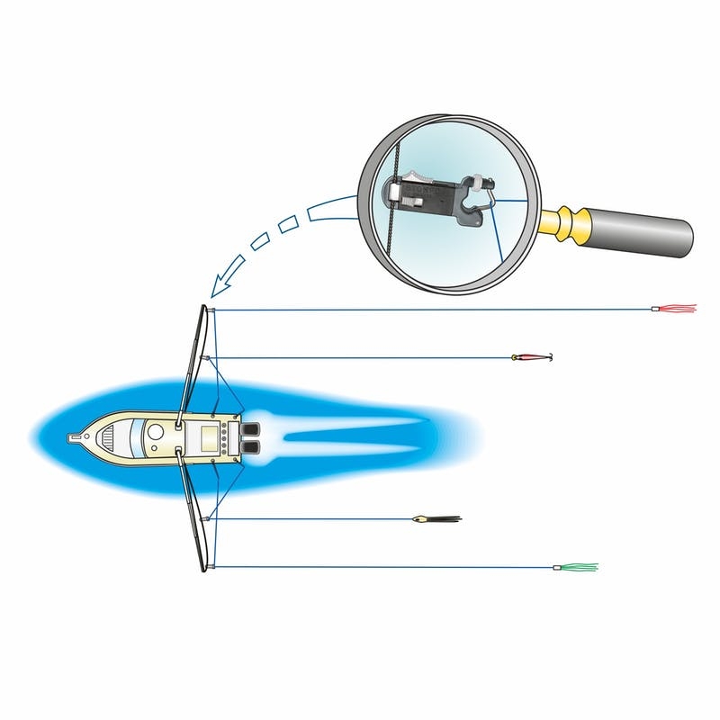 Line release pliers for otter boards. The screw-on knob allows precise adjustment of the line release tension. In addition, the special quick-locking system of the pliers on the trawl line allows the angler to use multiple pliers on the same trawl.