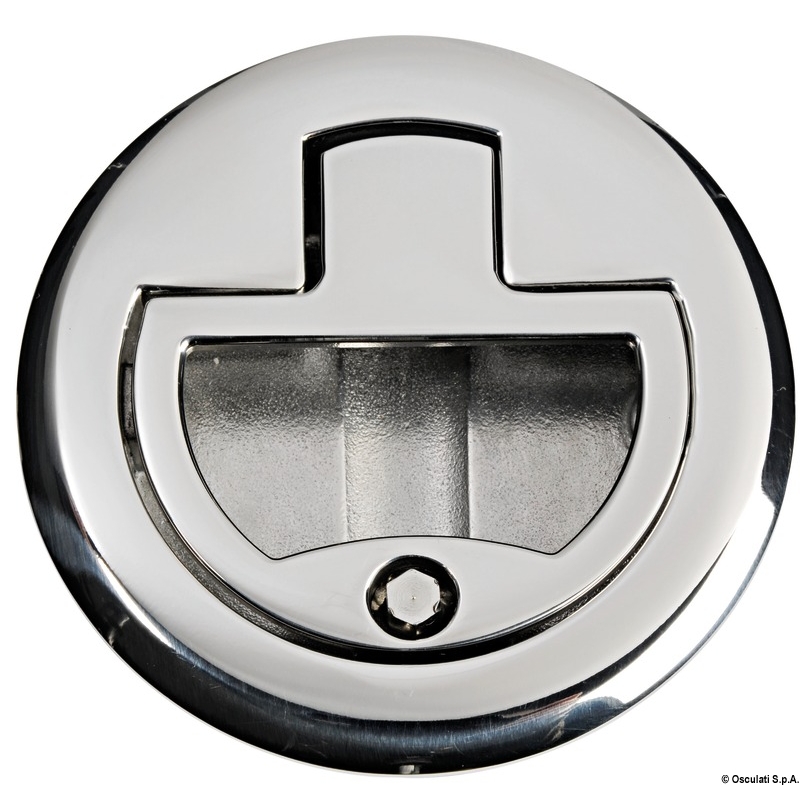 Snap-lock with spring-loaded retractable handle. All AISI 316 stainless steel, mirror-polished.