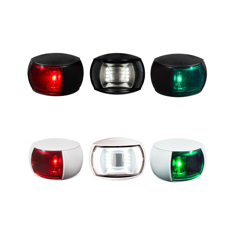 Navigation lights for boats up to 20 meters.IP67 watertight case and lenses made of corrosion- and UV-resistant antishock material. Ultra low power consumption, pre-wired with marine cables, Multivolt 9-33V, equipped with protection circuit for voltage spikes and polarity reversal. Minimum visible distance 2 NM. R.I.Na., CE(EMC), IMO-COLREG, USCG, BSH and ABYC certified.