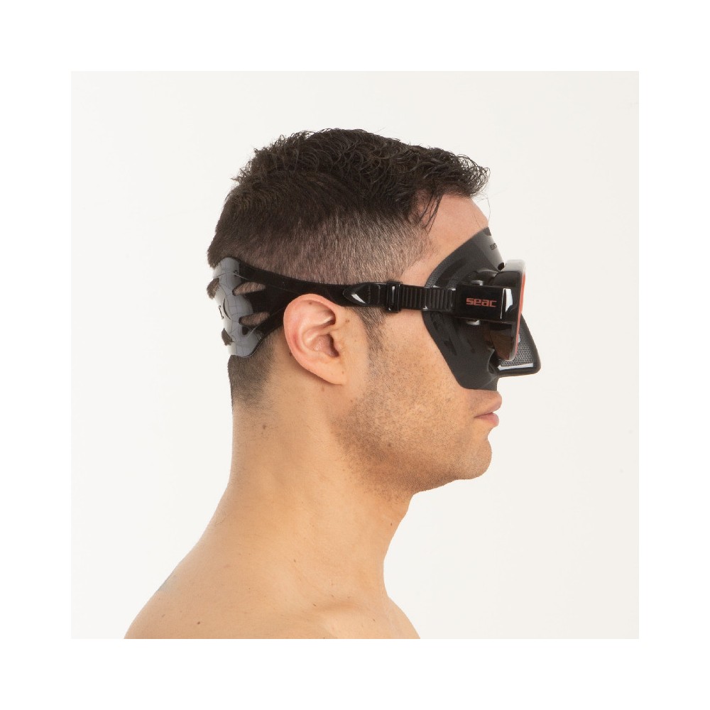 - GREAT COMFORT | The Seac Extreme diving mask is equipped with the Tubing Connected system, which features buckles integrated into the shell to reduce pressure on the face and a large silicone band behind the neck to keep the mask firmly in place.