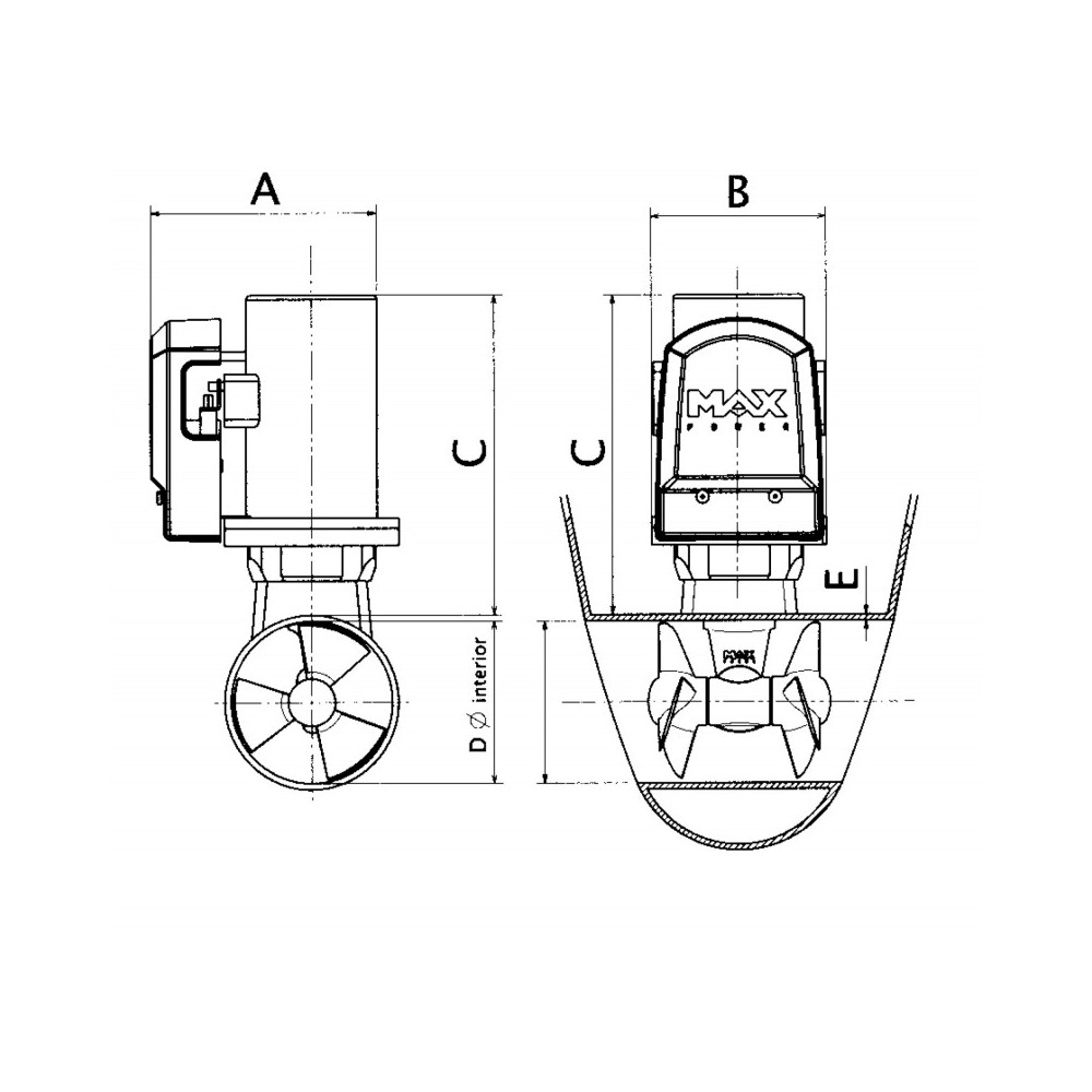 For complete and correct installation, you will need: control panel, tunnel, fuse, fuse holder, and battery isolator, complete with engine relay. Ideal for boats between 14 and 22 meters. 2 propellers, thrust 195 kg, power 14.96 kW/20 HP, 24V, tunnel diameter 250 mm, weight 37 kg.