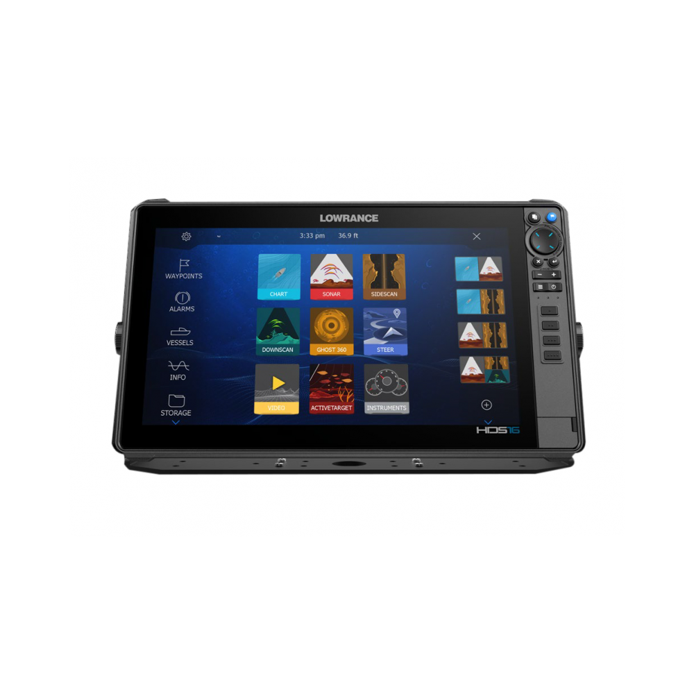 The new HDS® Pro is the evolution of previous HDS models, designed for a better view of marine life, thanks to the new Active Imaging™ HD ultra-high definition and integration with optional modules such as the active target. Next-generation internal sonar allows the use of the two transducer ports (9 Pin Xsonic) independently, offering a maximum power of 1 kW per channel. Active Imaging™ HD offers a high-definition view of Lowrance CHIRP sonar, SideScan and DownScan Imaging™. The high-definition AIHD transducer is essential for a clear and detailed image. FishReveal™ has also been expanded to be available on SideScan and DownScan, making it easier to identify fish to the sides and below the boat. (Requires S3100 module). The SolarMAX™ HD touchscreen delivers stunning graphical images of fish, structure and detail from C-MAP Discover/reveal and Navioniocs+/platinum charts, easily visible from any angle, in direct sunlight and through polarized lenses – making a real difference on the water. Deeper integration: HDS® Pro makes it easy to customize your boat to fit the way you fish, choosing from fishfinding, navigation, networking and entertainment options. Expand your system with compatibility for Halo radar, autopilot (NAC1 and NAC2 Outpilot), NMEA 2000® and SiriusXM® Weather/Audio to monitor changing weather conditions and listen to your favorite music. Plus, the addition of ActiveTarget® 2 Live Sonar offers a higher-resolution view of fish movement and structure. It also supports plug-and-play installation of two ActiveTarget® systems, allowing you to observe multiple views at once and expand Front and Scout modes for improved bait tracking.