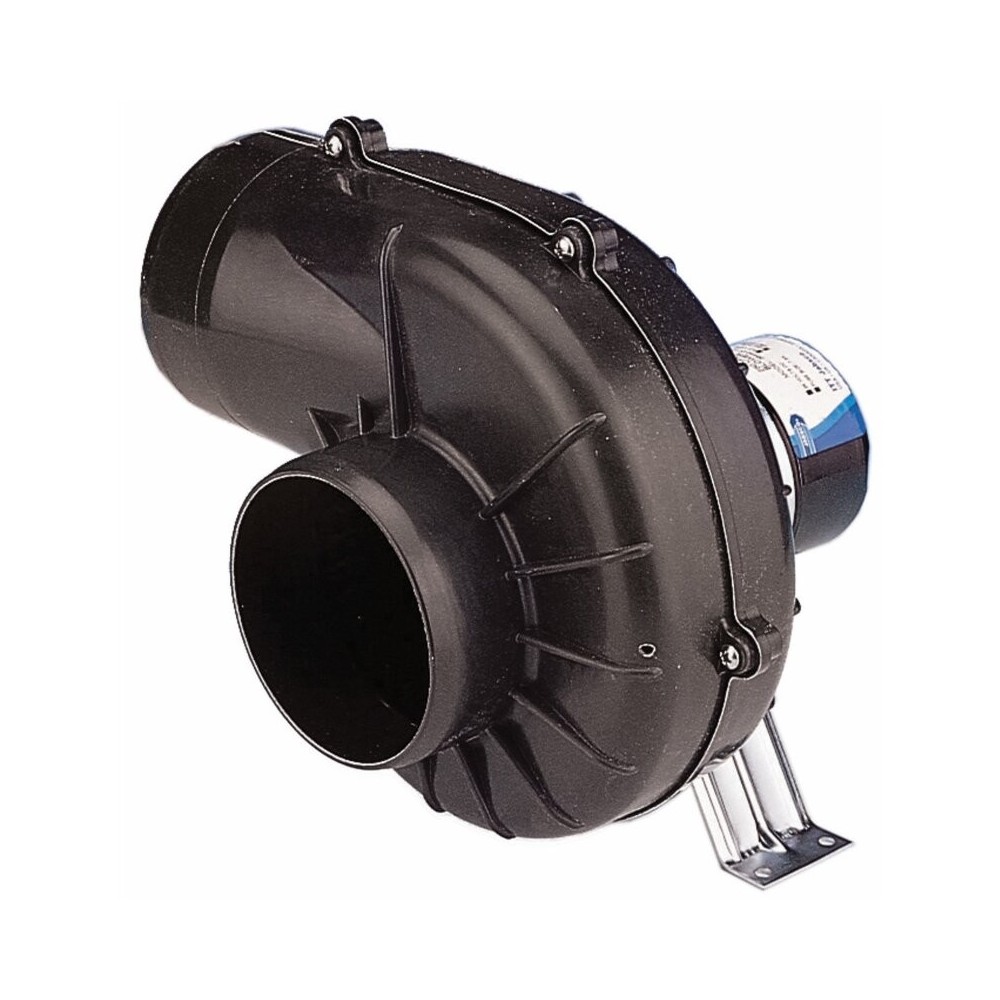 Corrosion-resistant blowers provide ventilation for bilges, engine compartments, galleys, and decks. Output: 4.2 m³/min (150 CFM) at open flow. Dimensionally stable and quiet Delrin rotors. Efficient airflow with high volume. Rugged reinforced plastic housing. Made of corrosion-resistant materials. Complies with ISO 8846 MARINE and USCG 183.410: Ignition Protection. Flexible mounting allows 360º adjustment of the outlet direction. Connections: For 75 mm (3") ducts. Amperage approx. 3.3A, 5A fuse. Dimensions: Height 23.5 cm / width 20 cm / length 20 cm