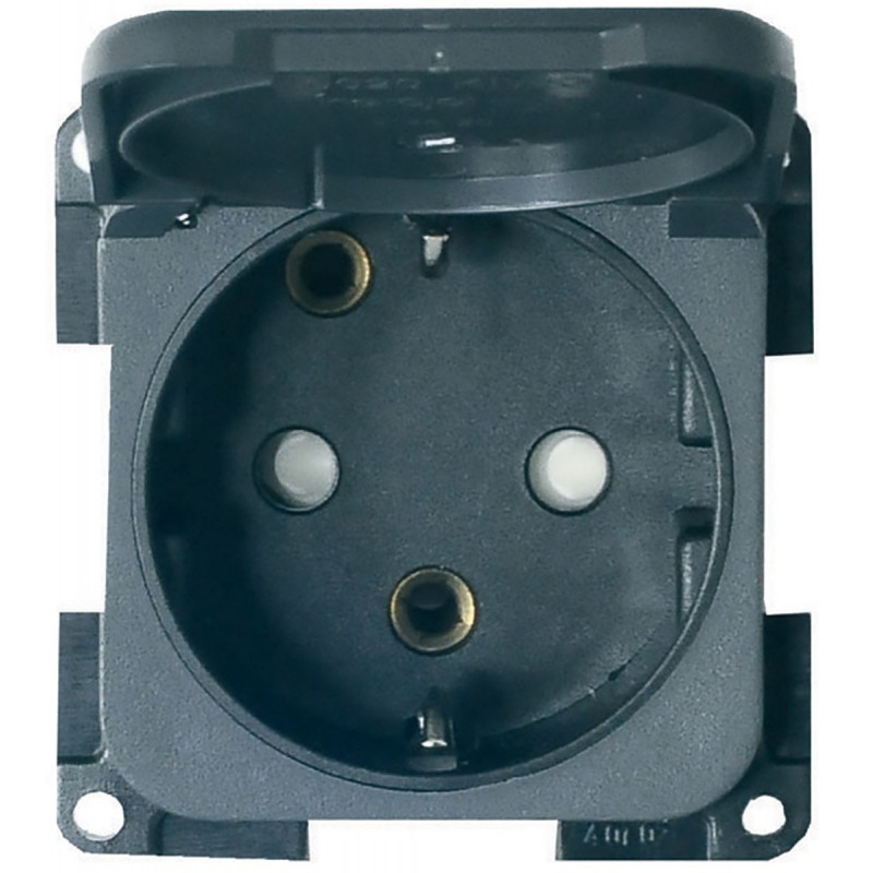Schuko230 V socket outlet with cover and back protection.Recess hole Ø mm. 45, depthmm. 48. Modular electrical equipment in gray plastic ral 7015