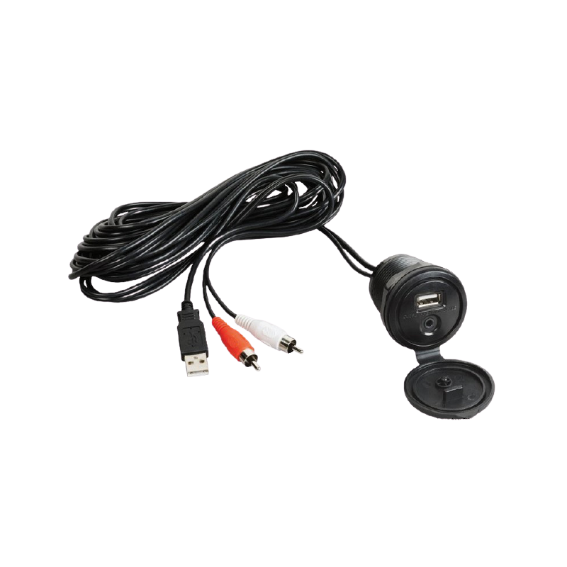 USB-AUX auxiliary cable with waterproof faceplate. For listening to music stored on external USB drives. Compatible with item code GA1077 .