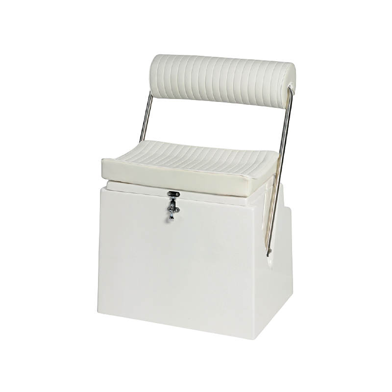 Fabricado en fibra de vidrio blanca , cuenta con un asiento que se abre como compartimento de almacenamiento y un respaldo abatible que permite usarlo tanto en posición de proa como de popa. Los herrajes son de acero inoxidable . Los cojines son de polipiel blanca.