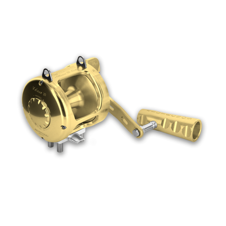 Albacore 20 Veloce, Drag-Preset integrado y brida de embrague de diseño ergonómico, freno de disco único capaz de ser ajustado a 22,5 LBS con Free-Spool Guaranteed, maneta ergonómica que, gracias a su forma y ángulo, mantiene el brazo en la posición de máximo empuje minimizando la pérdida de potencia.