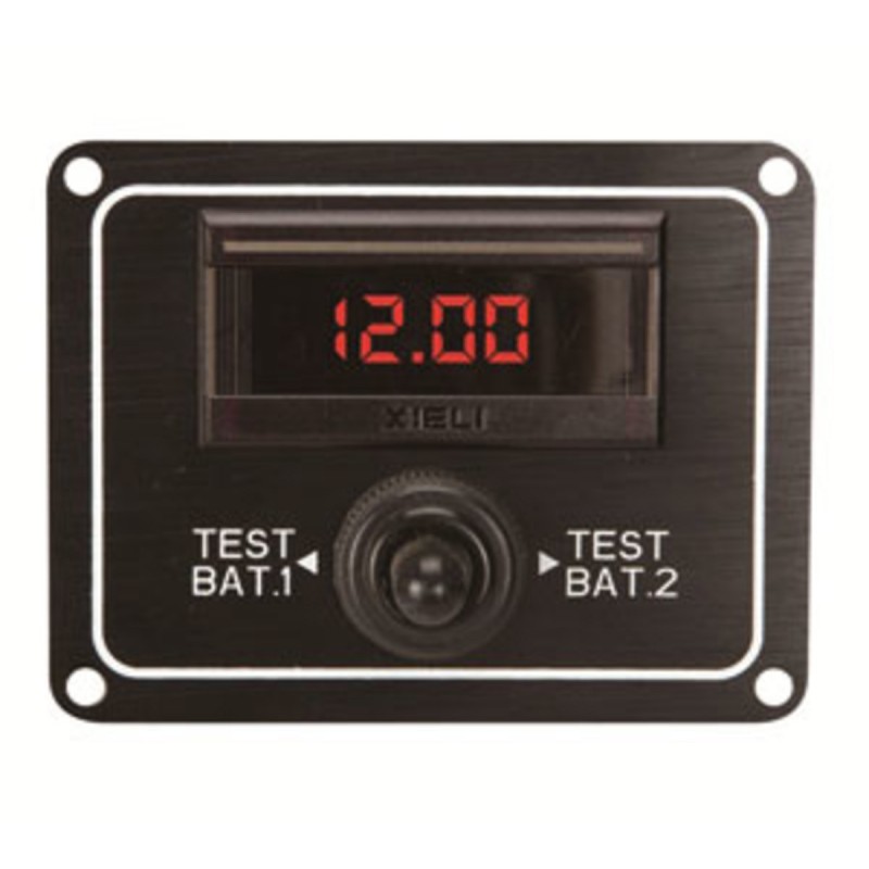 Panel de aleación ligera pintado de negro, con prueba de estado de carga digital para 2 baterías.