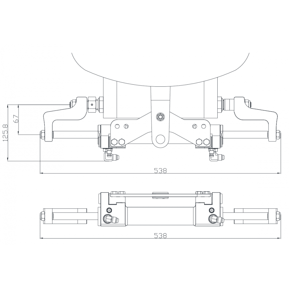 Cilindro hidráulico para motores FB hasta 100CV: Volumen: 83CC Huella (597mm, 174mm, 150mm)