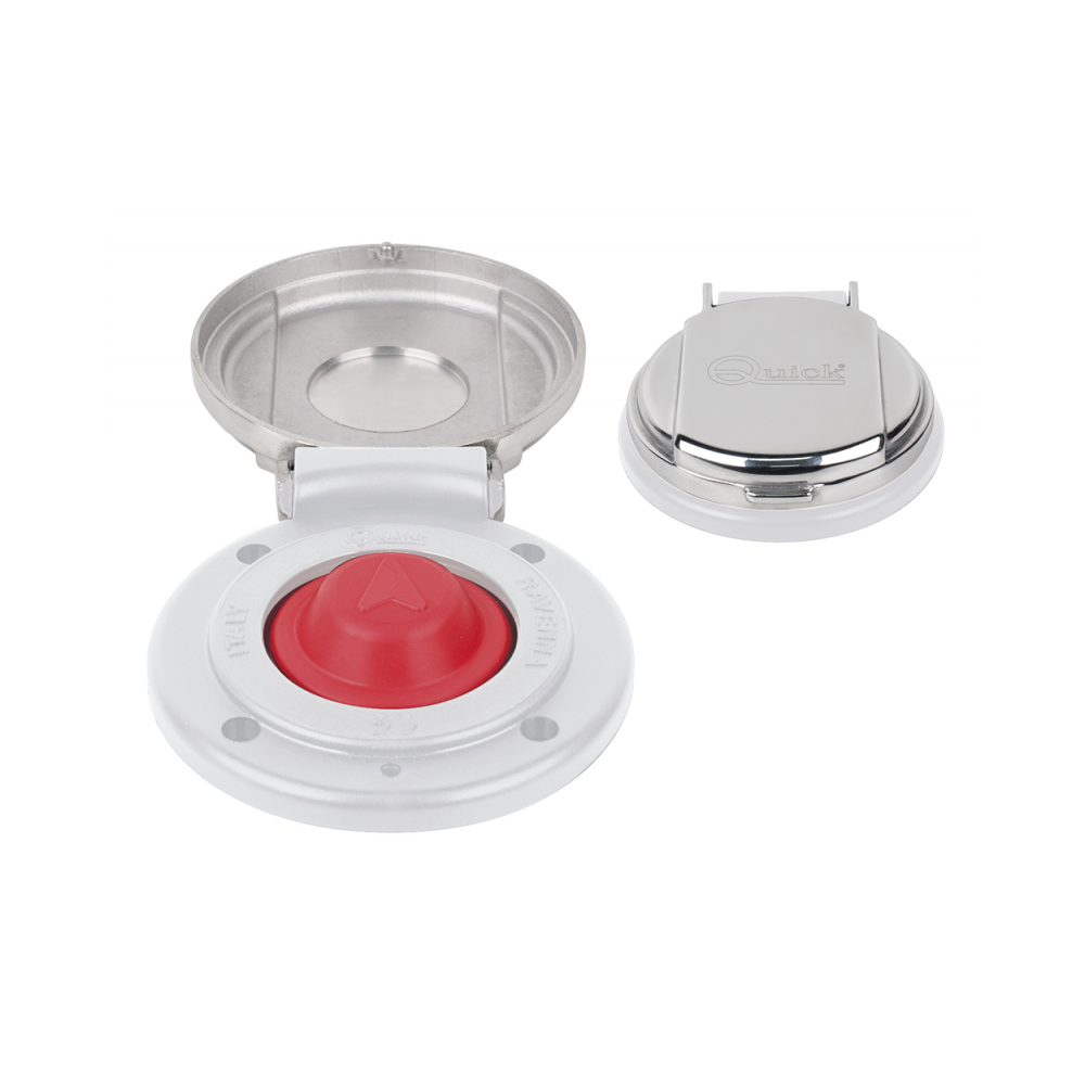 Interruptor de pedal estanco para accionar cualquier tipo de cabrestante eléctrico. Base de plástico blanco, cubierta protectora de acero inoxidable para evitar presiones accidentales. Contacto eléctrico normalmente abierto, 12/24 V.