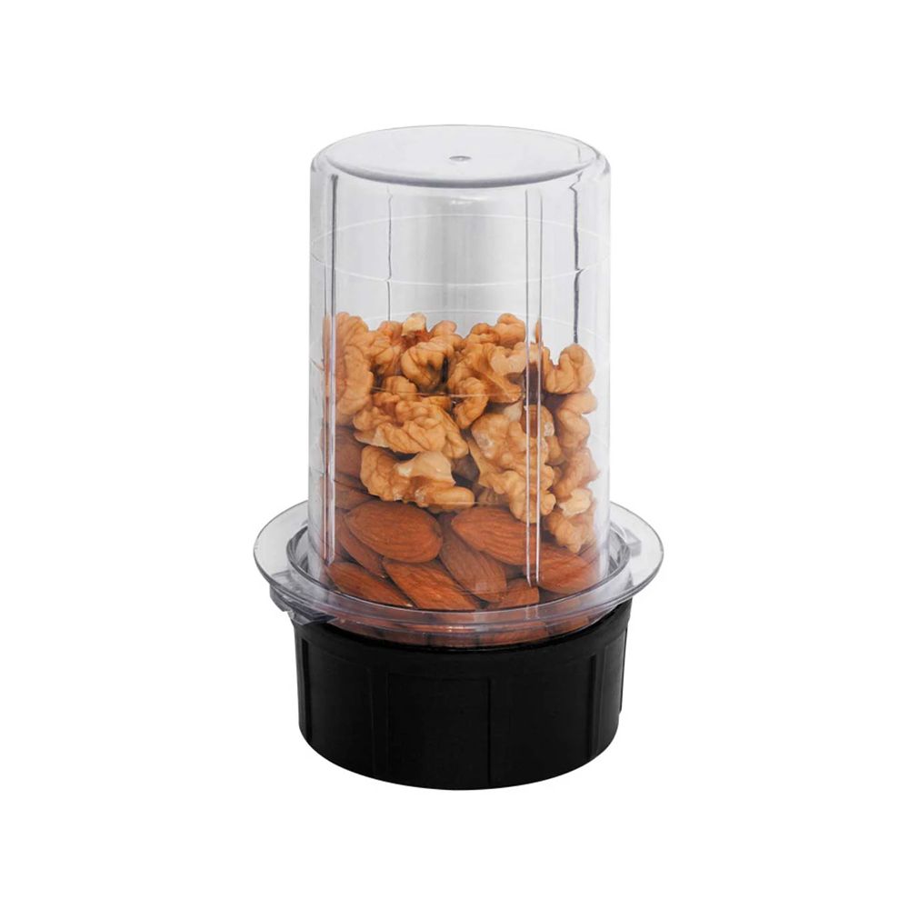 Con su motor de 300 W, la batidora cuenta con una cuchilla picadora, perfecta para crear batidos y refrescantes cócteles, y un molinillo especial para hierbas, semillas, frutos secos y café. Dispone de un modo de funcionamiento de tres niveles, incluida la función PULSE, diseñada para activar el motor a intervalos cortos y a la máxima potencia. Esta función es ideal para premezclar ingredientes duros, como hielo o fruta congelada, antes de la mezcla completa. El aparato está equipado con un sistema de seguridad que impide el funcionamiento si la botella no está bien sujeta a la base.