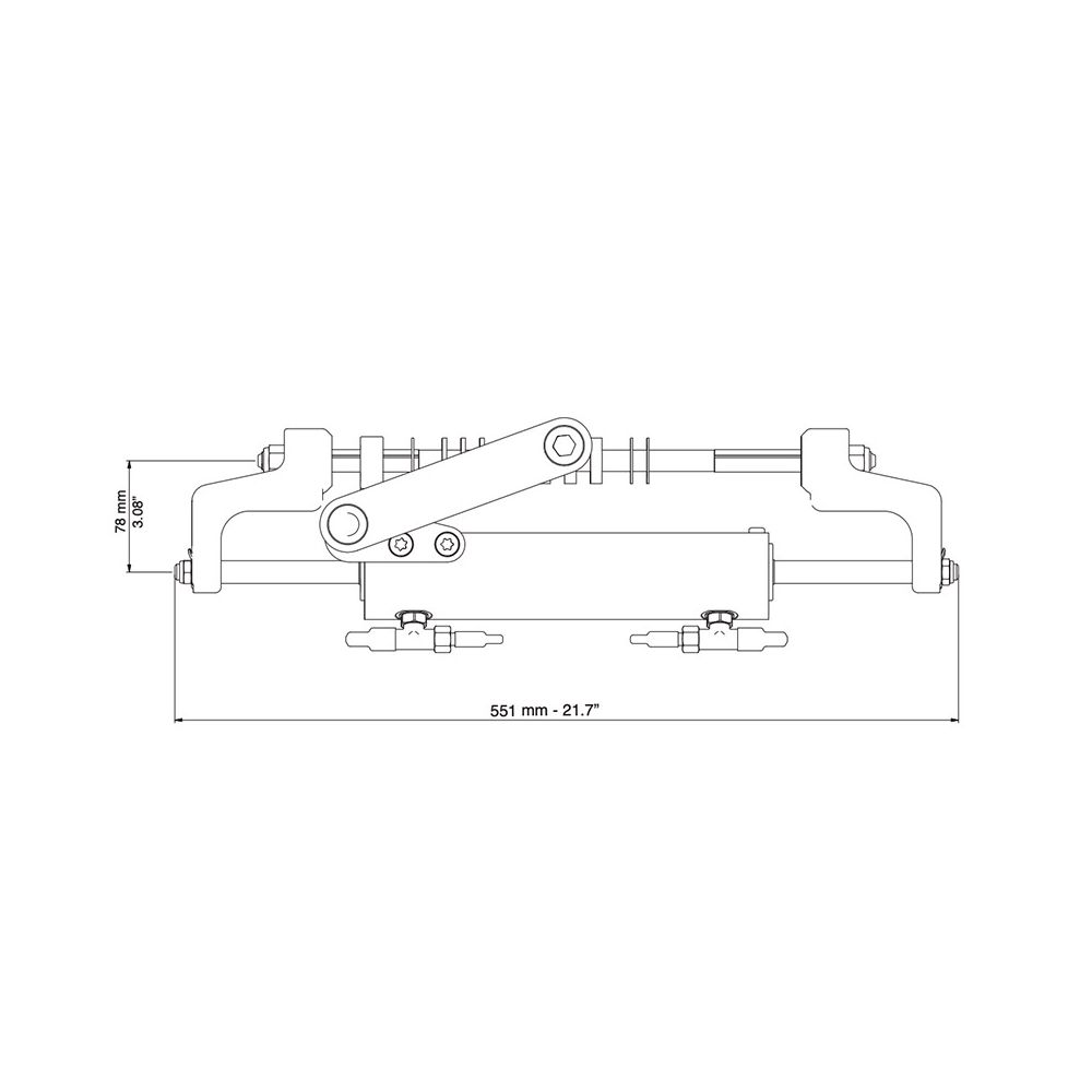 Cylindre monté à l'avant, équilibré à vitesse égale de la mi-course à la fin de la course, avec bras de déviation profilé.