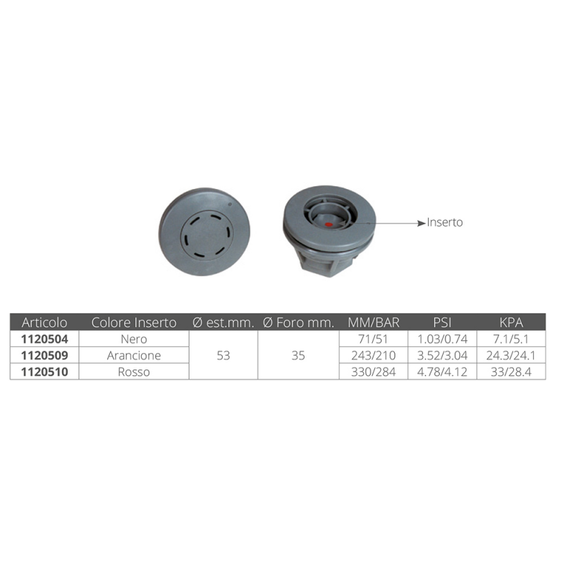 Soupape de surpression pour bateaux pneumatiques et canots de sauvetage. Protège contre les surpressions de gonflage, équipée d'un bouchon pour radeau de sauvetage. Grise. Autres réglages disponibles sur demande.