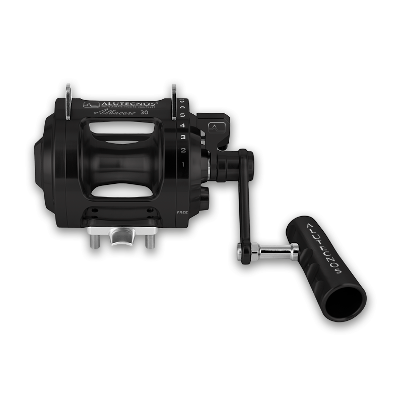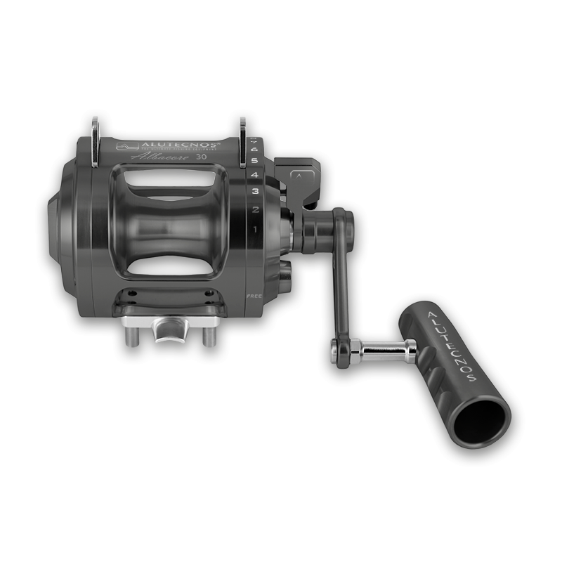Albacore 30, système "anti-retour" infini, came frontale et bouton de débrayage pour le positionnement "libre" et "complet" du levier d'embrayage avec réarmement automatique, cinq roulements à billes et engrenages en acier inoxydable trempé résistant à la corrosion.