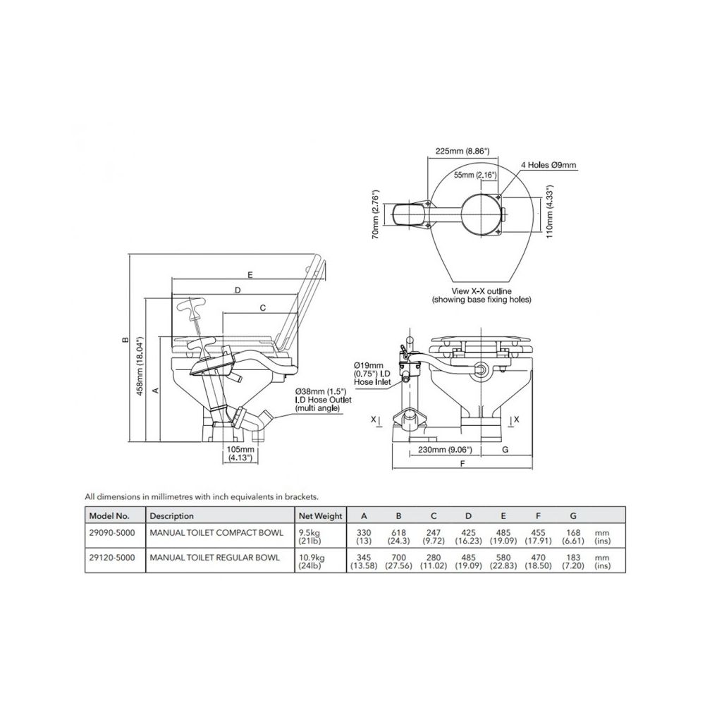 Jabsco 29097-1000 - Abattant/couvercle de toilette compact