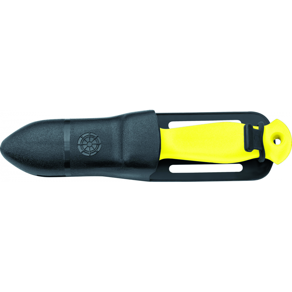 Couteau de plongée avec lame et scie en acier inoxydable de 9 cm de long, étui et manche colorés, longueur totale mm.190