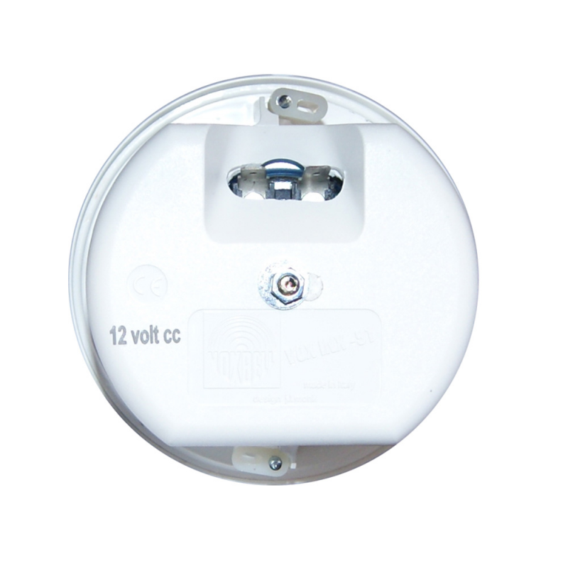 Trompette encastrée Têtière Ø mm. 117 x 86, trou encastré Ø mm.105, profondeur mm. 70. Alim. 12V. Couleur blanche. Consommation électrique de 4,4 ampères. Niveau sonore 105 dB - 430 Hz