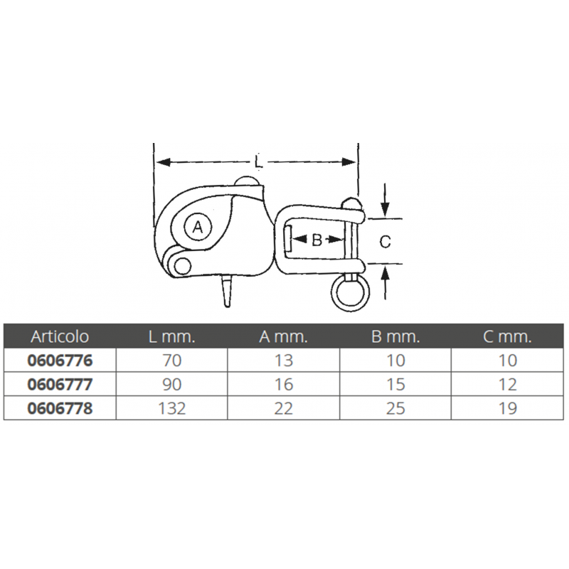 Moschettonein acciaio inox AISI 316, per spinnaker a scatto ad occhio girevole.Con apertura esterna.