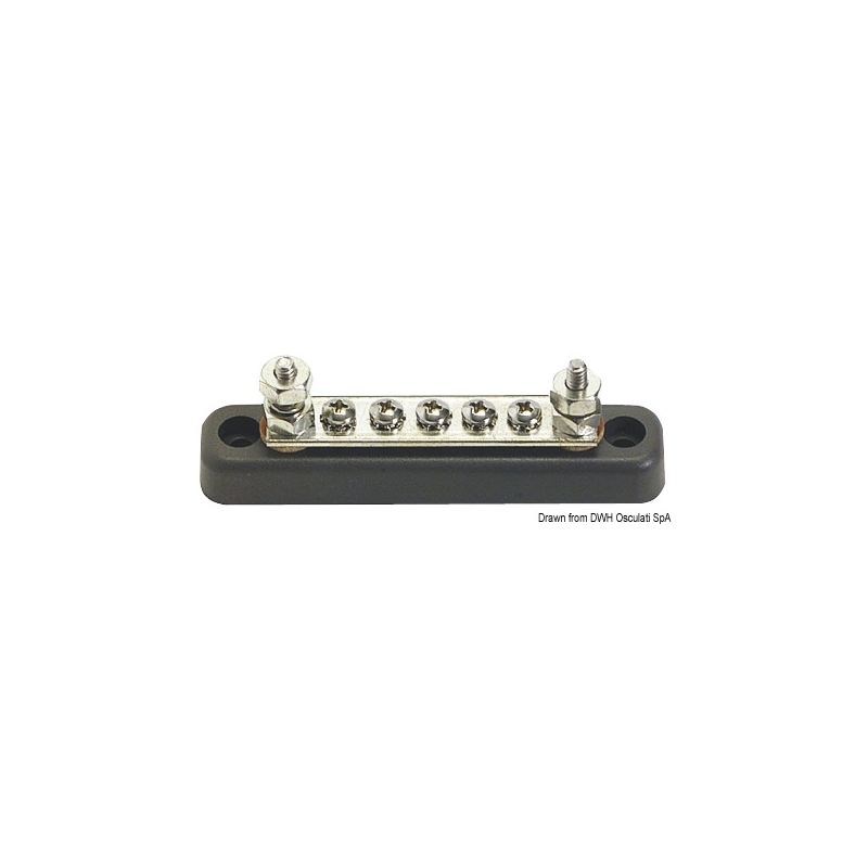 Base plastica ad alta capacità isolante. Barra di supporto in rame nichelato, viti e dadi in acciaio inox. volt 12/48.